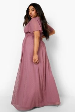 Vestito Maxi Plus Size In Rete Plumetis Con Maniche A Campana