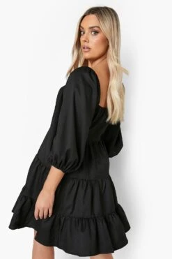 Vestito Grembiule Plus Size Con Scollo Quadrato E Maniche A Sbuffo