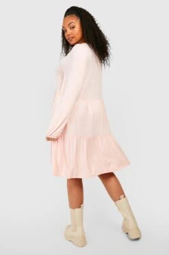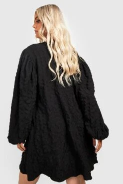 Vestito Grembiule Plus Size Effetto Goffrato Con Maniche Lunghe A Sbuffo