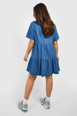 Vestito Grembiule Plus Size In Cotone Con Arricciature E Laccetti In Vita