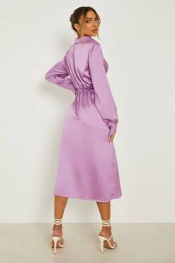 Vestito A Trapezio Midi Tall A Collo Alto Con Maniche Lunghe