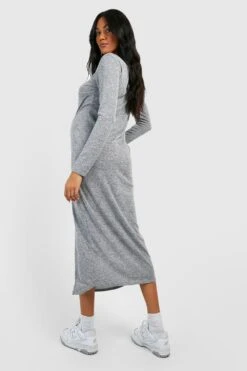 Vestito Longuette Premaman In Maglia In Mélange Con Colletto Stile Polo