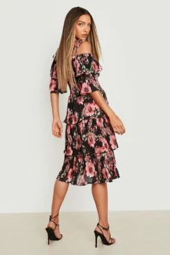 Vestito Midi Petite In Raso Drappeggiato Sulle Spalle Con Spacco