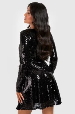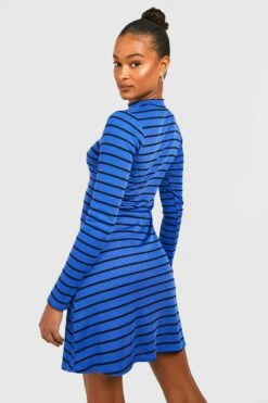 Vestito Skater Tall In Maglia A Coste A Righe Con Maniche Lunghe E Collo A Imbuto