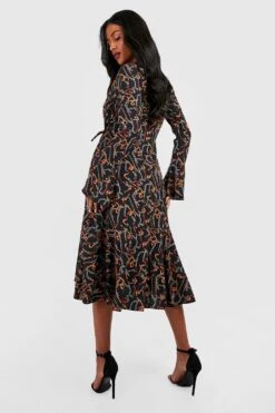 Vestito Skater Tall Con Stampa Animalier Astratta Monocromatica E Balze
