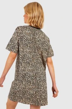 Vestito Skater Tall In Jacquard Di Raso Leopardato Con Laccetti Frontali