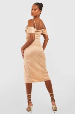 Vestito Midi Tall Aperto Sul Retro In Raso Rifinito Con Strass