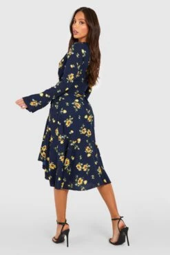 Vestito Midi Tall A Girocollo Morbido Con Cintura E Maniche Lunghe