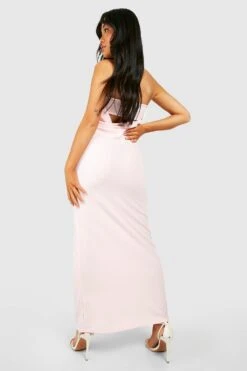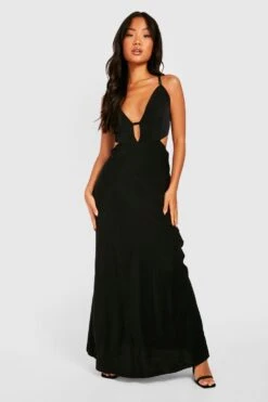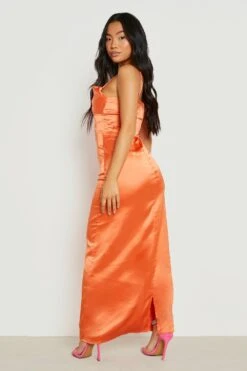 Vestito Maxi Petite In Raso Con Scollo Profondo E Laccetti Sul Retro