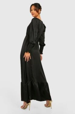 Vestito Maxi Petite In Raso Increspato Con Polsini E Volant Sul Fondo