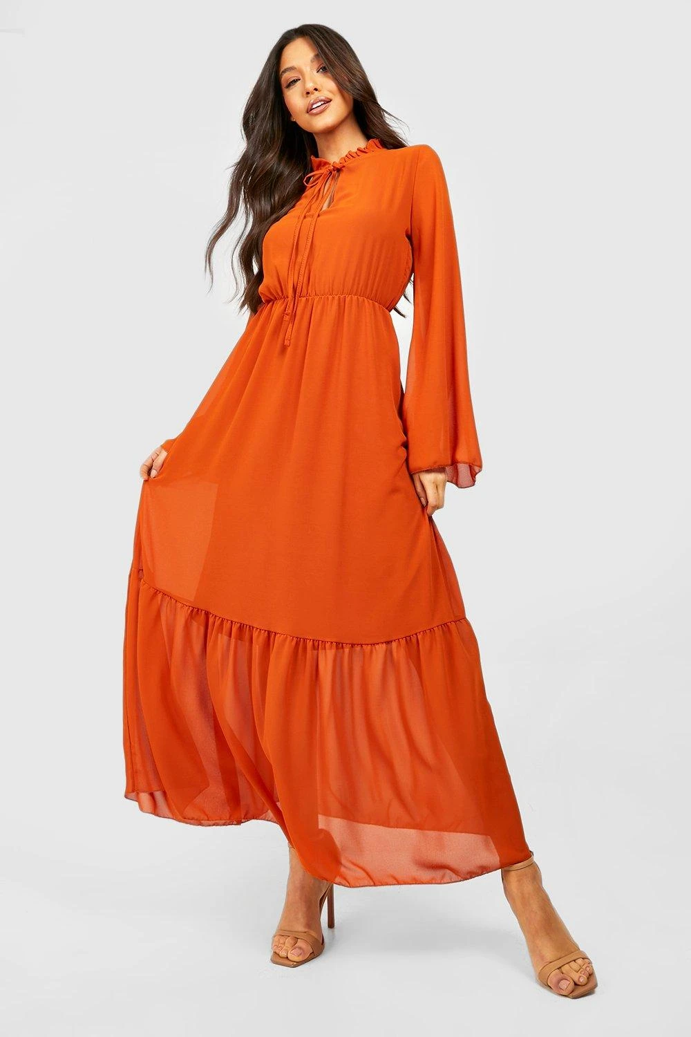 Leggeri, morbidi e chic, i vestiti in chiffon sono il capo di tendenza della stagione che non può mancare nel tuo armadio, amica. Il tessuto leggero e semi-trasparente lo rende una scelta perfetta per una serata fuori. Lascia che sia il tuo outfit a parlare per te con questi vestiti carini ed eleganti. Cerchi ispirazione? Puoi abbinare questo modello con un paio di stivaletti alla caviglia e una giacca in pelle, per il look Smart casual definitivo. O puoi optare per un paio di scarpe con tacco effetto nudo per le tue notti più glam. Questo vestito sarà il tuo nuovo mantra.