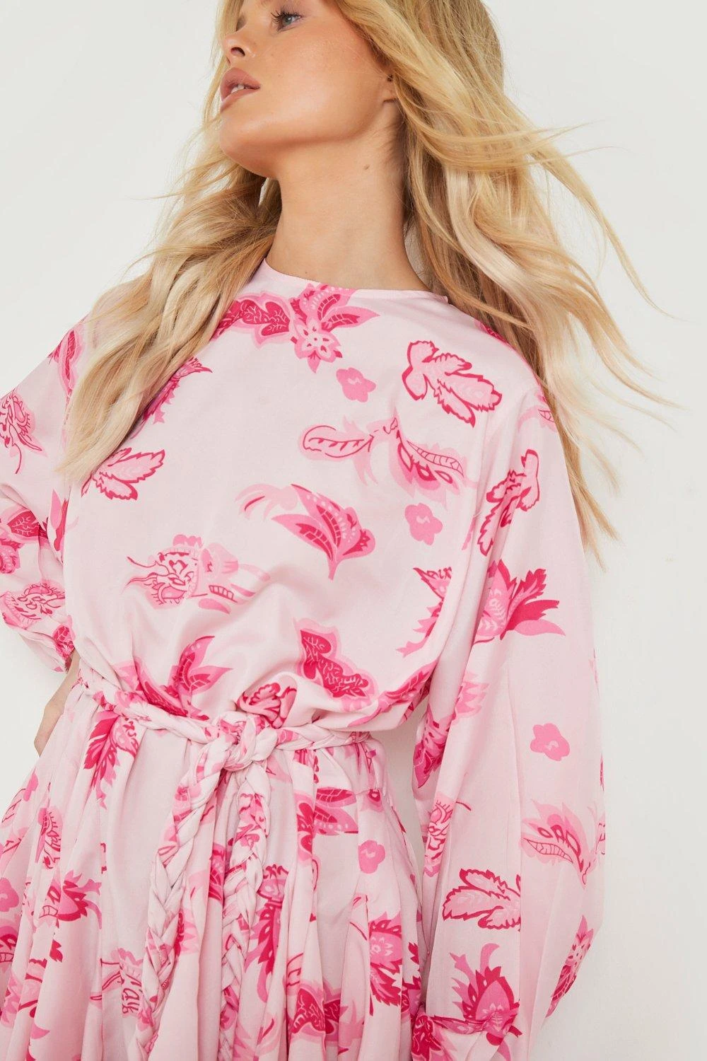 100% Polyester Wash dark colours separately Wash with similar colours Do not bleach dry Do not tumble dry iron on reverse Do not dry clean Model wears UK10